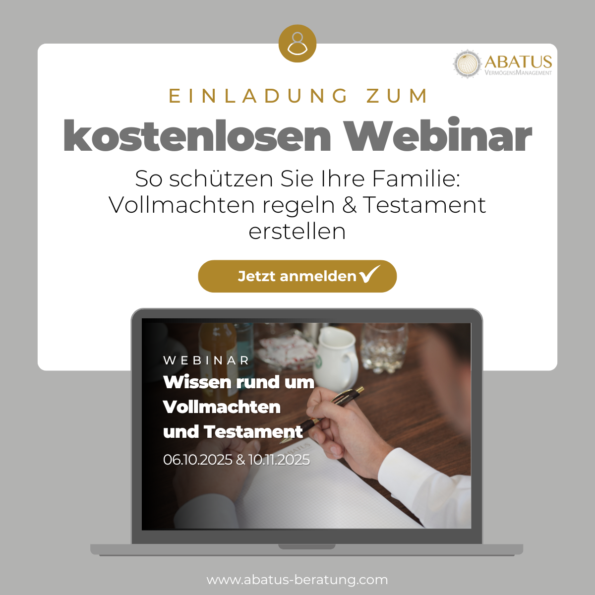Einladung zum kostenlosen Webinar: So schützen Sie Ihre Familie: Vollmachten regeln & Testament erstellen